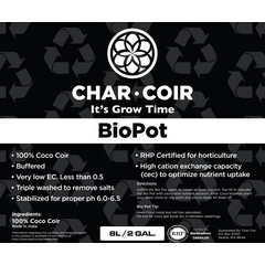 The Char Coir 8 Liter BioPot is designed for the flowering/budding stage and is equivalent to a medium-sized pot of substrate, but no external container is needed. The BioPot is wrapped in a fabric exterior, with compressed coco coir inside.  This is one of these easiest ways to use our...